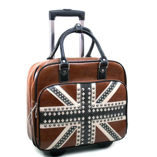 Buy Cheap BROWN LEATHER LIKE STUDDED ROLLING TOTE BAG With Special Pomotions