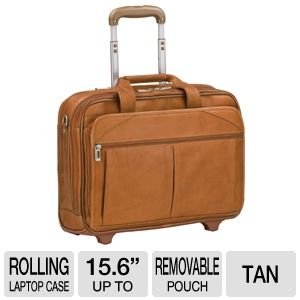 Main compartment contains removable padded laptop pocket which holds 15.4" laptop. Front zippered compartment features organizer with Velcro flap closure mesh pocket, open and zippered pockets, disk pockets, business card holder, and key flap. Telescoping handle system. Removable/adjustable shoulder strap.